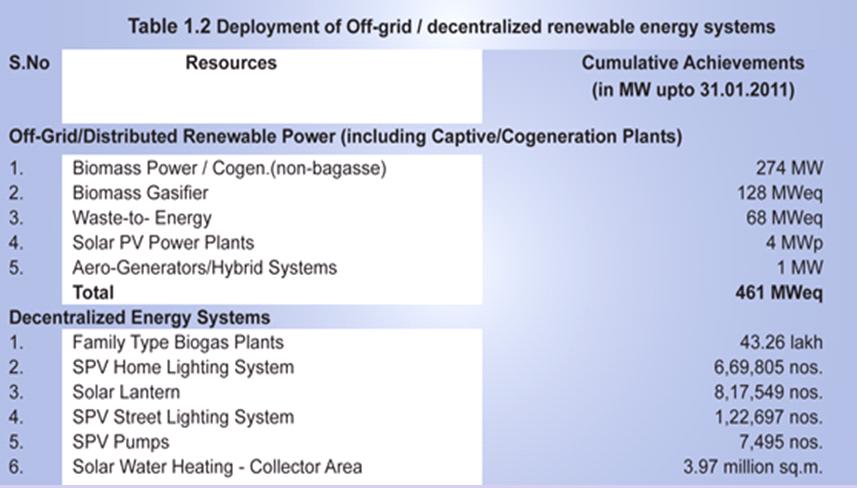 *Table 1 to Table 1.3: Source – Ministry of New and Renewable Energy, India